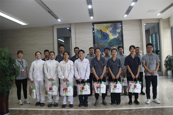 finally, the leaders of the Federation of trade unions distributed cool gift packages to everyone, including shampoo, laundry detergent, body wash, toilet water, toothpaste, toothbrush and other summer supplies. They not only brought coolness to the hot summer, but also care and care to the employees.
